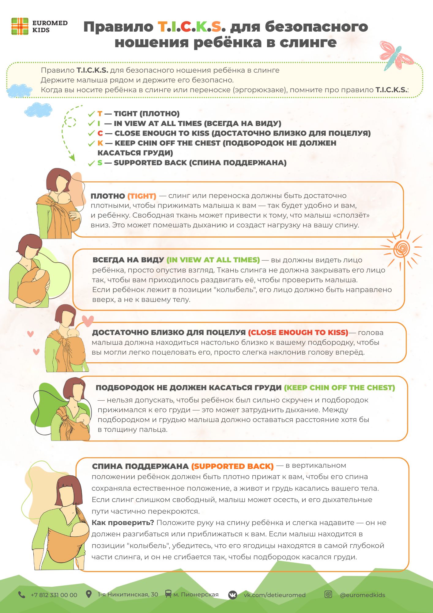 В попытках облегчить жизнь, освободить вечно занятые ребёнком руки, молодые родители часто обращаются к различным детским гаджетам. Одни из них – это слинги и эргорюкзаки. Можно ли? Да, если вам это удобно. Как выбрать? Ориентируйтесь на собственный комфорт, а также на возраст ребёнка, указанный в инструкции к устройству. Как безопасно использовать? Следуйте ключевым правилам, указанным в памятке: