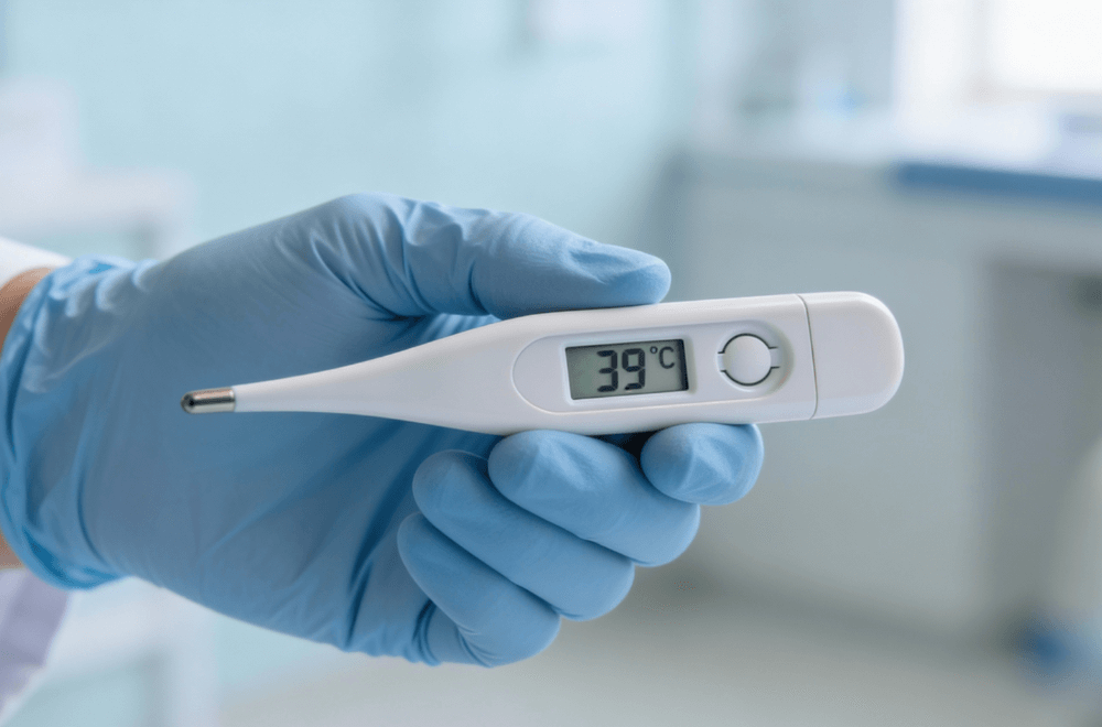 На приеме врач предварительно измеряет температуру, чтобы убедиться в том, что она в пределах нормы.